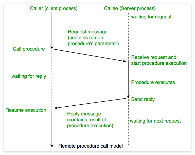 - RPC Model에서 Client는 Server에 Data Packet을 보내기 위해 Procedure 호출을 만듦.